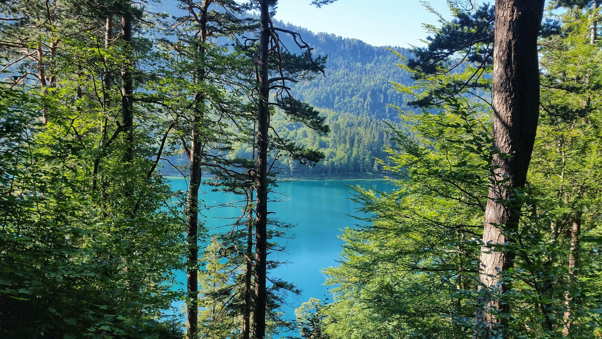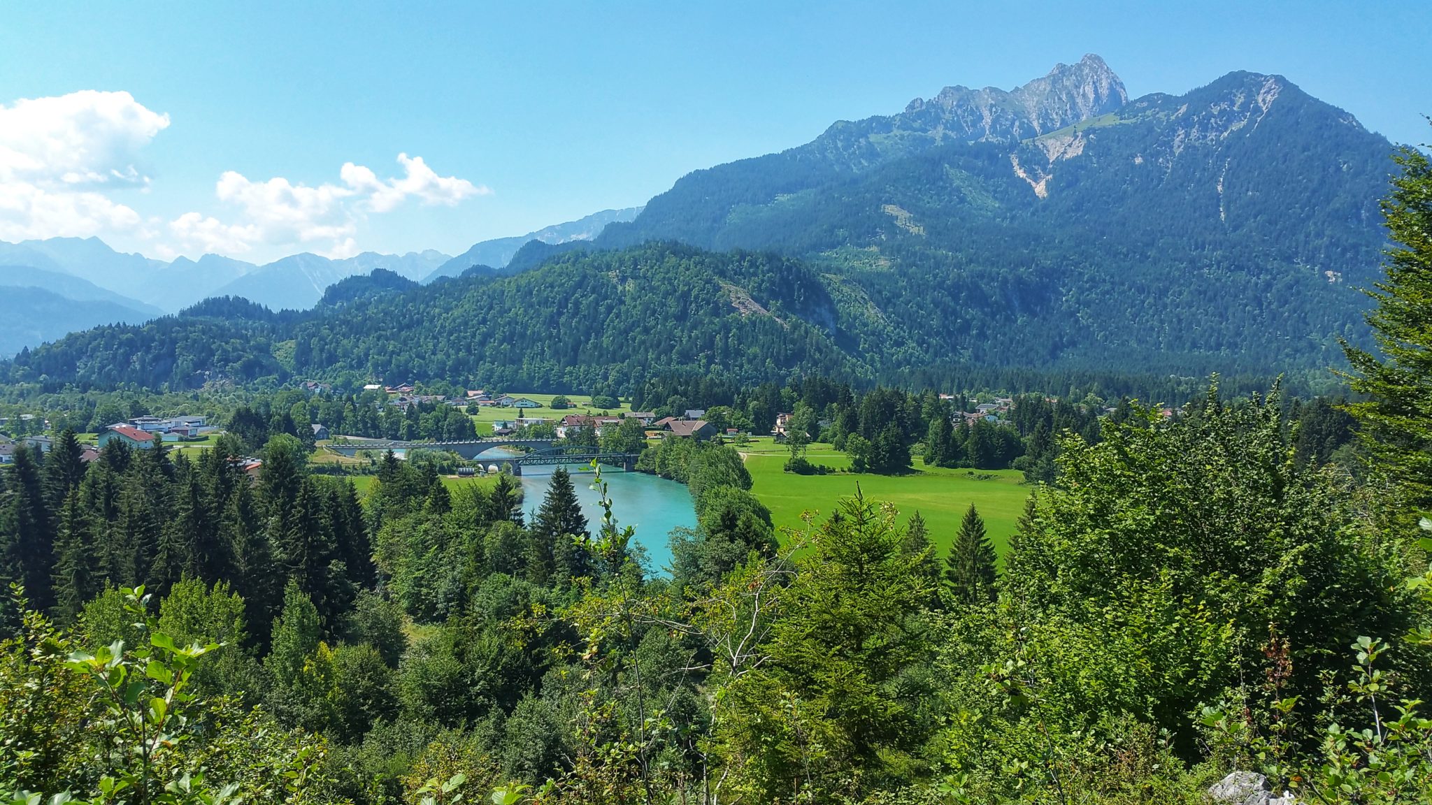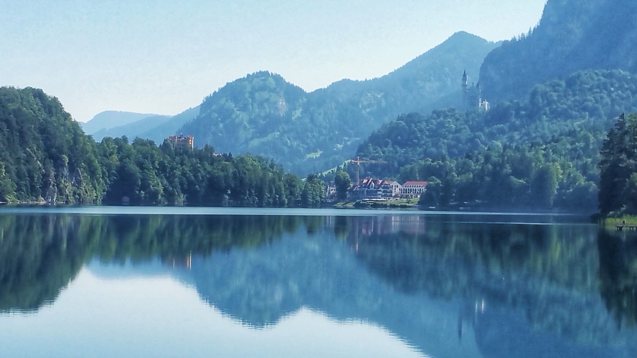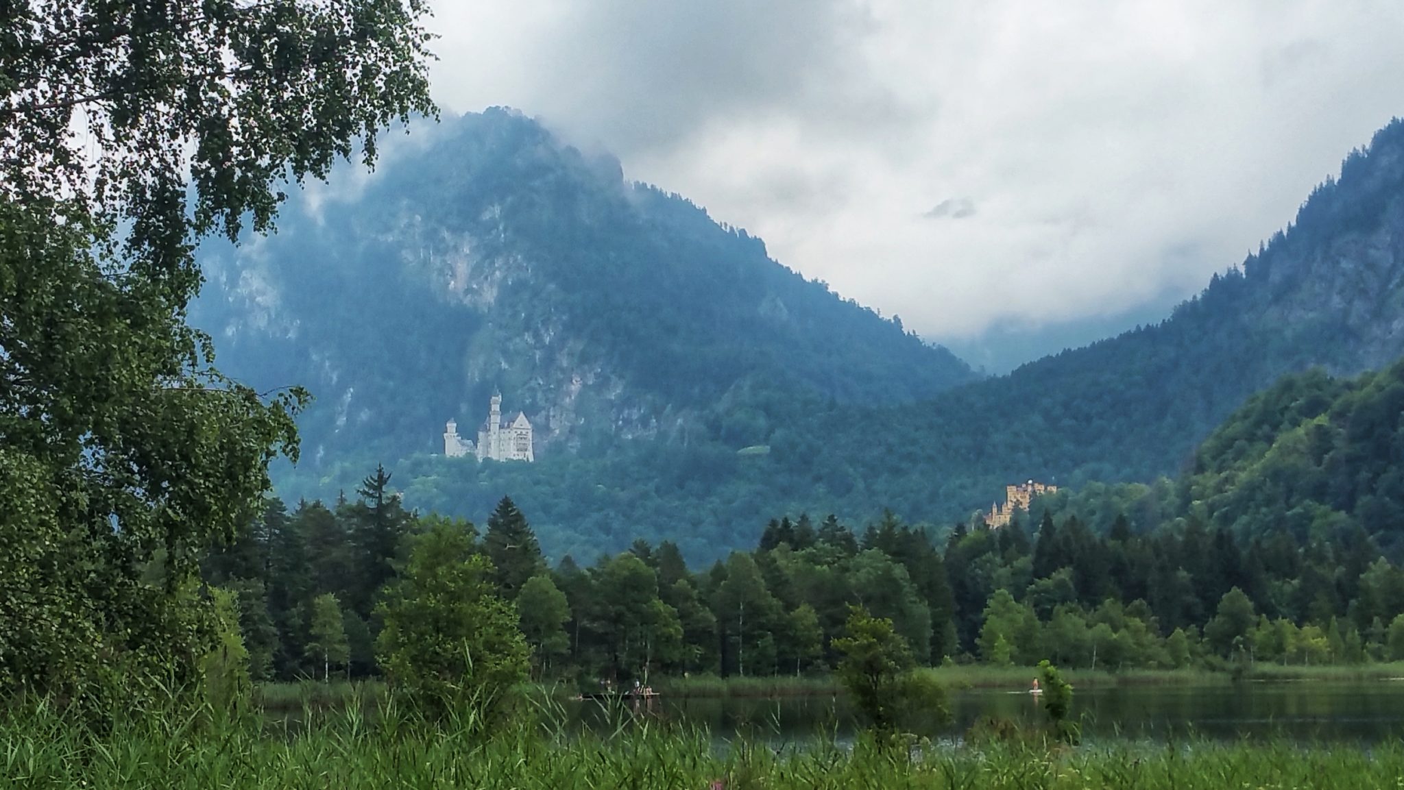 We wound through a forest and emerged at the Alpsee Lake. From there, we had our final views of the Neuschwanstein and Hohenschwangau castles at its other end. After leaving the beautiful Alpsee, we left Germany and entered Austria.