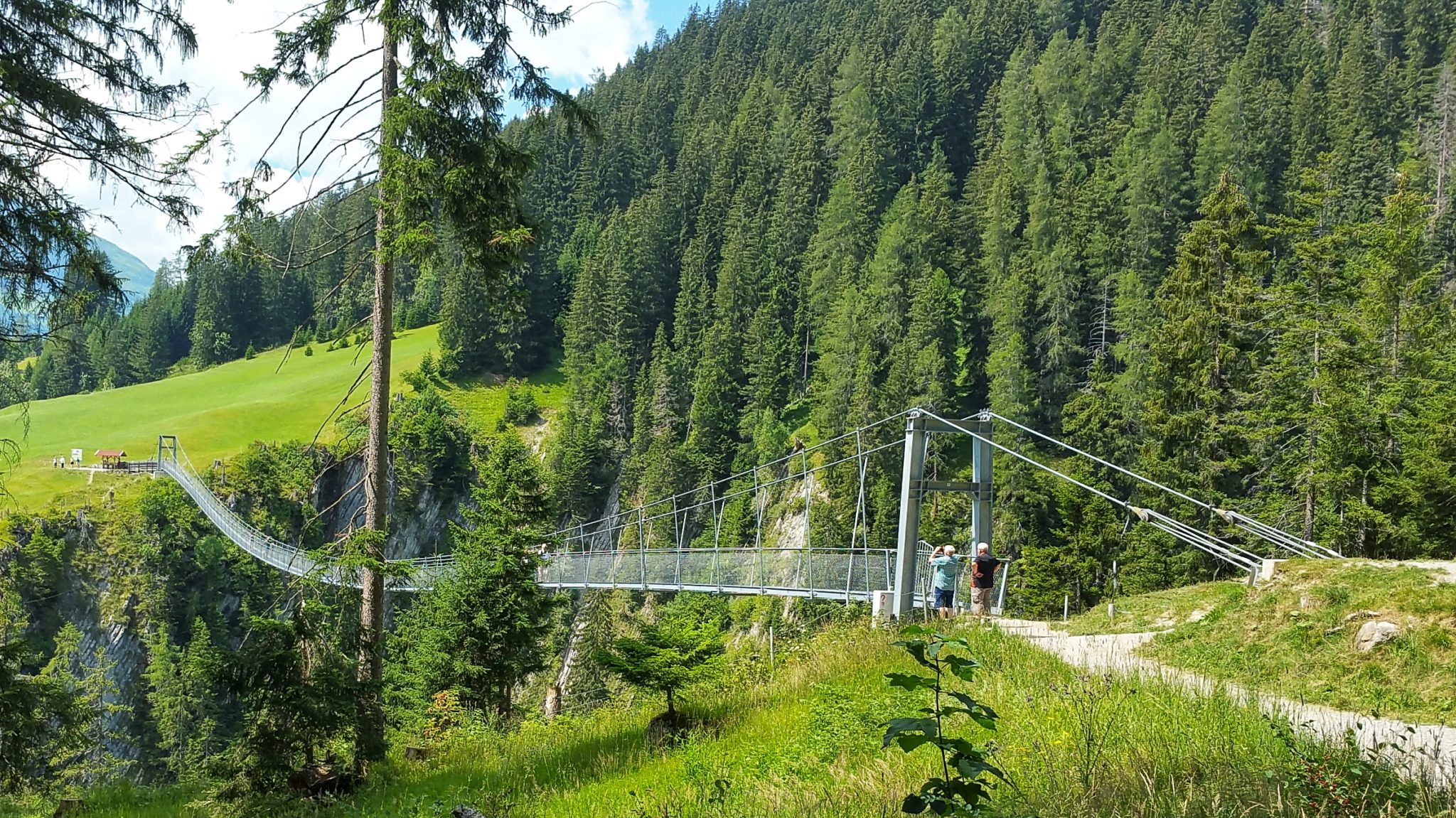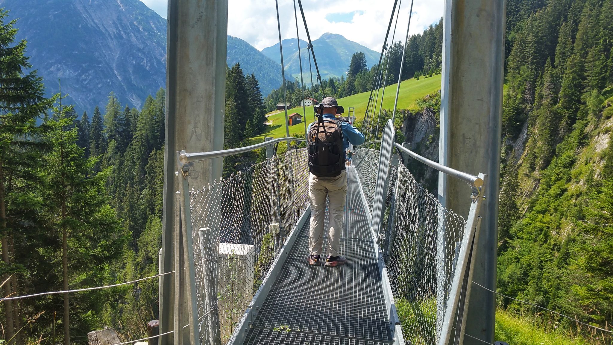 The highlight of the fourth day was a hanging bridge, just above the town of Holzgau. We had a choice to cross the bridge, 200 meters long, and the highest in Austria, at 105 meters (344 feet) above the ground, or to climb up several hundred feet through a gorge to meet the trail on the other side.