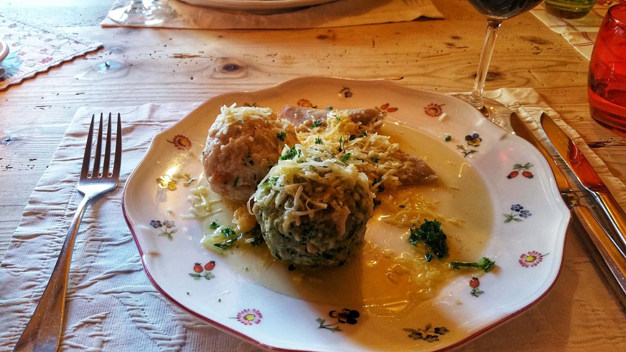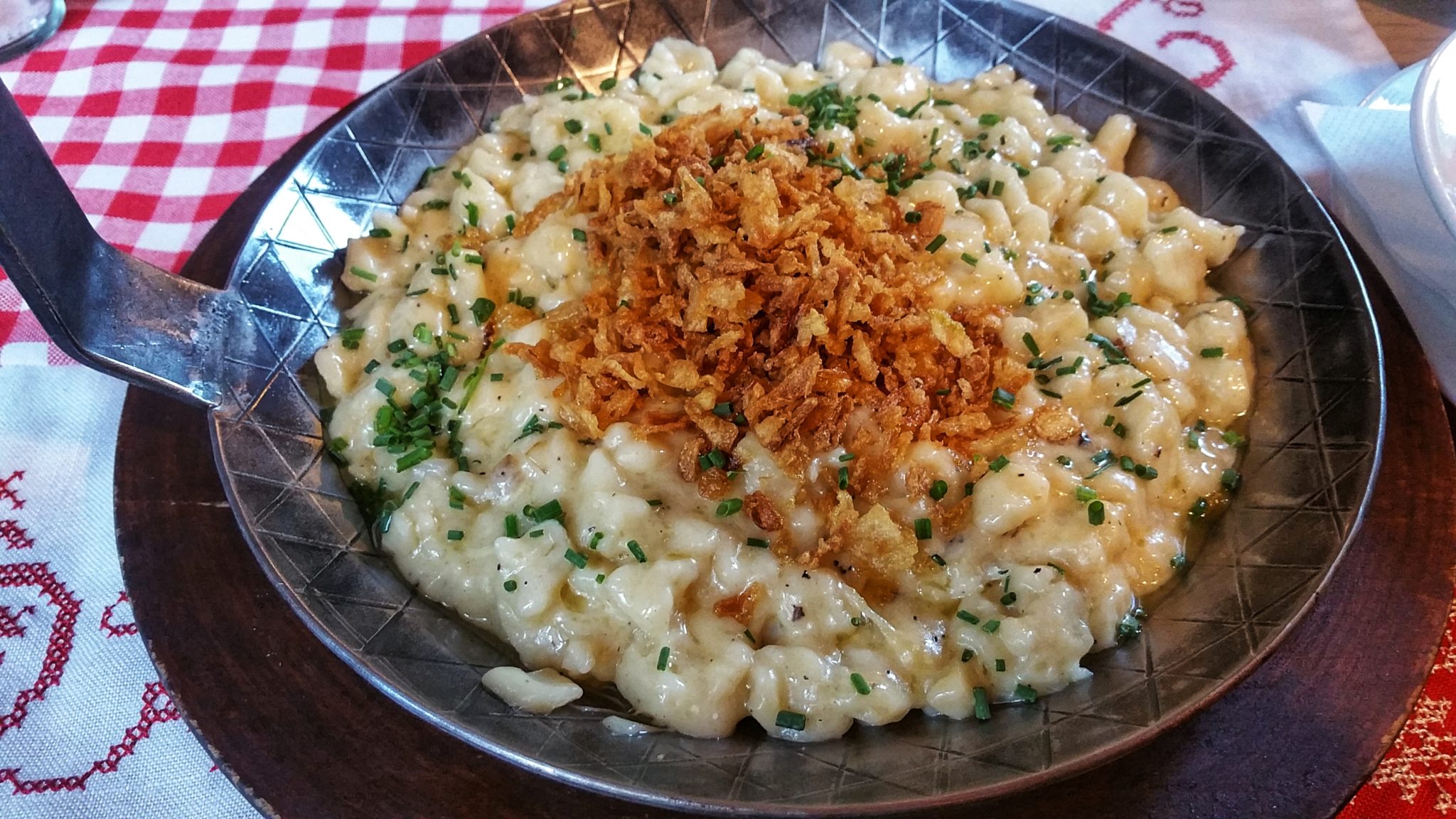 Our trek had taken us through the Tyrol and Vorarlberg states of Austria, and we enjoyed dinners at a couple of excellent restaurants along the way. One night Darren had kasespatzle, and the next night I had knodels (bread dumplings).